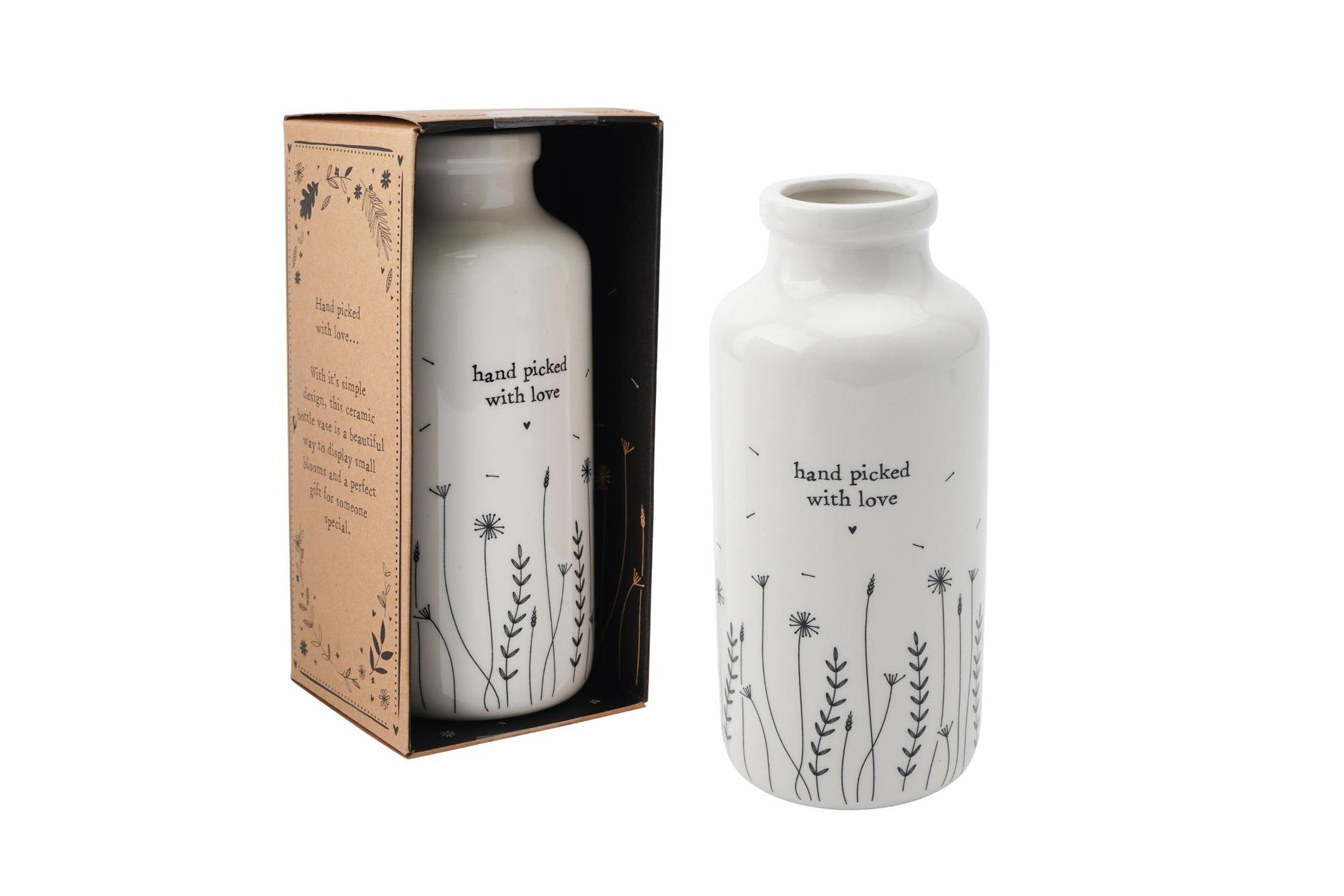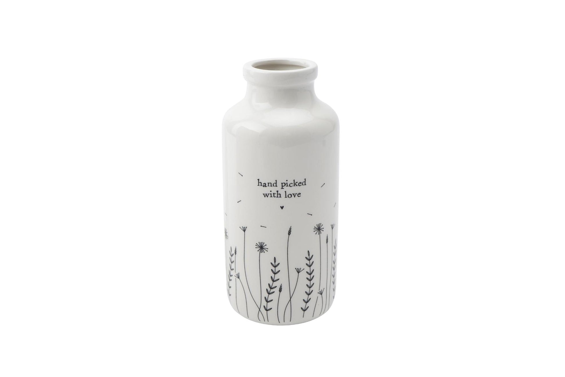 Details: This collectible vase is adorned with charming wildflower drawings and the sweet message 'hand picked with love'. Created by CGB Giftware, and lovingly designed in Cornwall, this vase is the perfect gift for someone special, spreading warmth and joy with its thoughtful design.