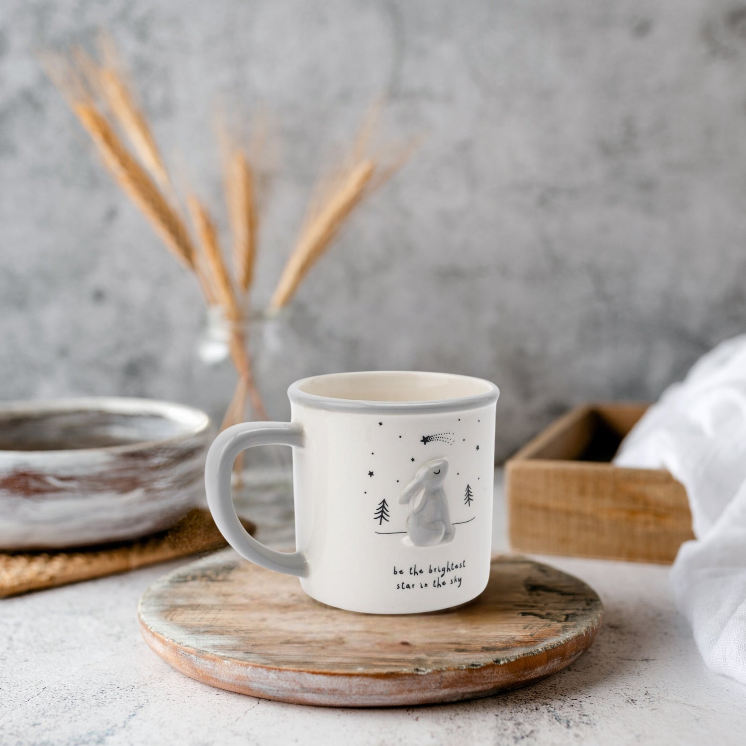 Details: This collectible mug from the 'Send With Love' range, lovingly designed in Cornwall, features a charming hare gazing at a shooting star against the caption 'be the brightest star in the sky'. With its thoughtful design, this mug is a perfect gift that is sure to make someone feel special and cherished.
