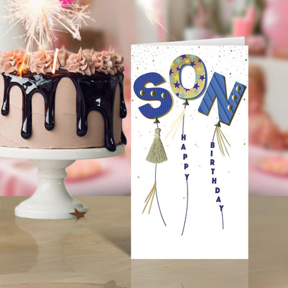 Excited to celebrate his birthday? This luxury hand-finished card is the perfect keepsake to help a special Son remember this birthday for years to come