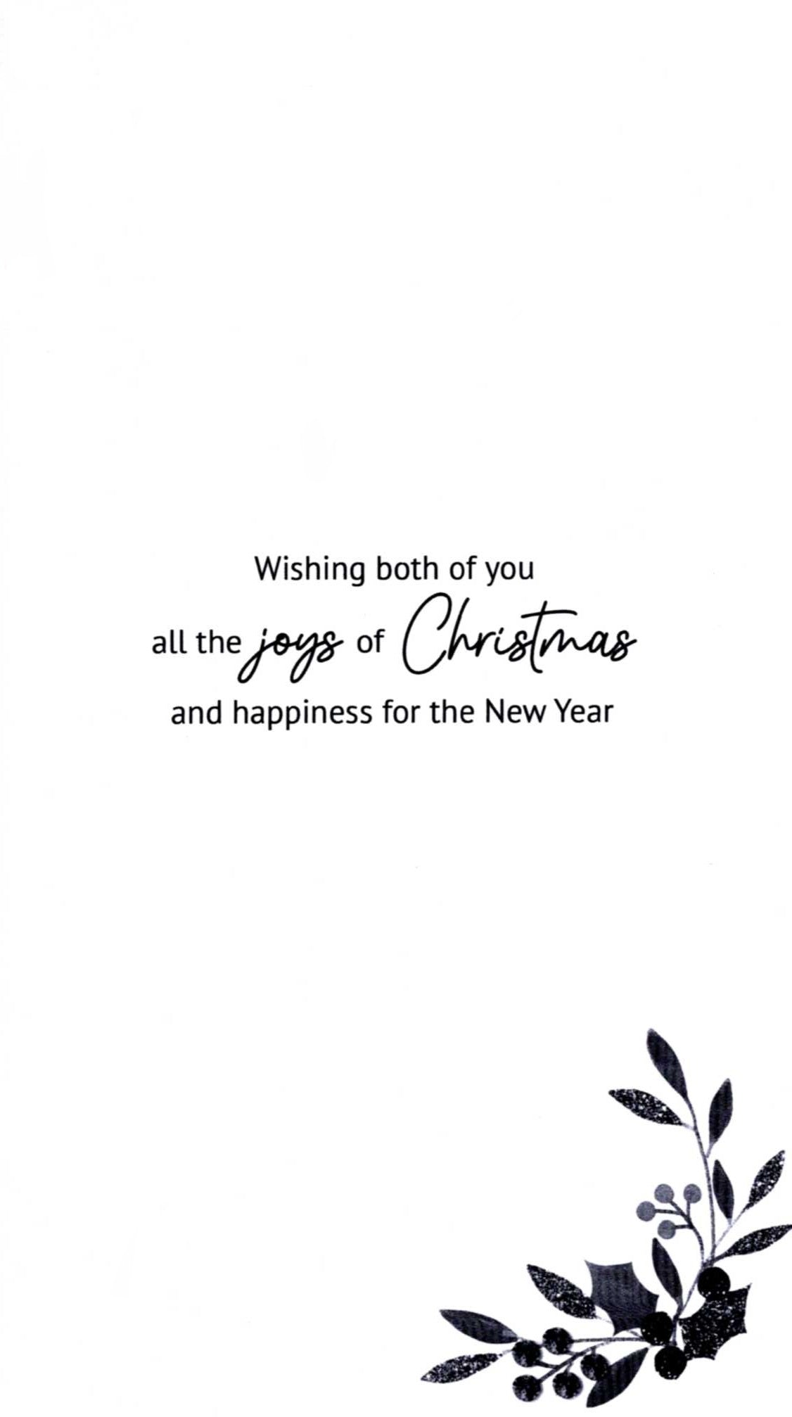 Message Inside: Wishing both of you all the joys of Christmas and happiness for the New Year