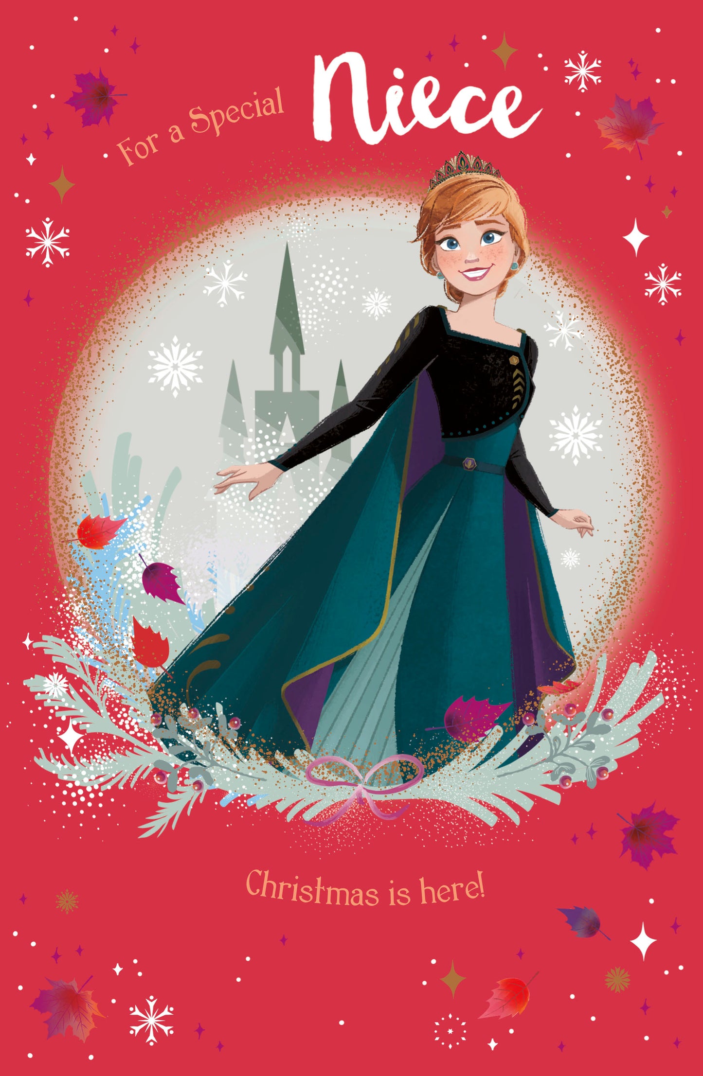 Details: A licensed Disney Frozen Christmas greeting card featuring a favourite Disney character finished with gold foil detailing