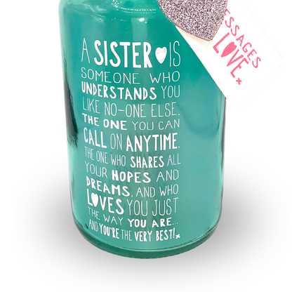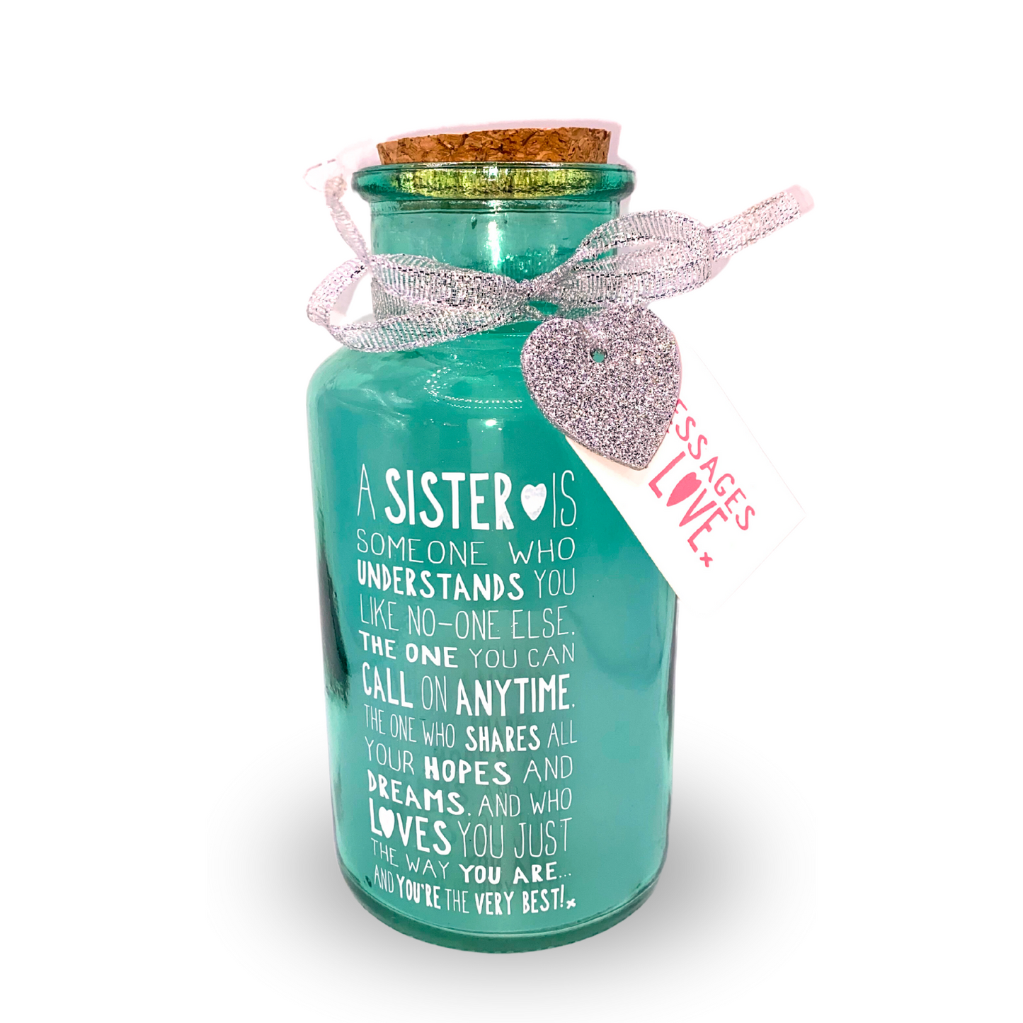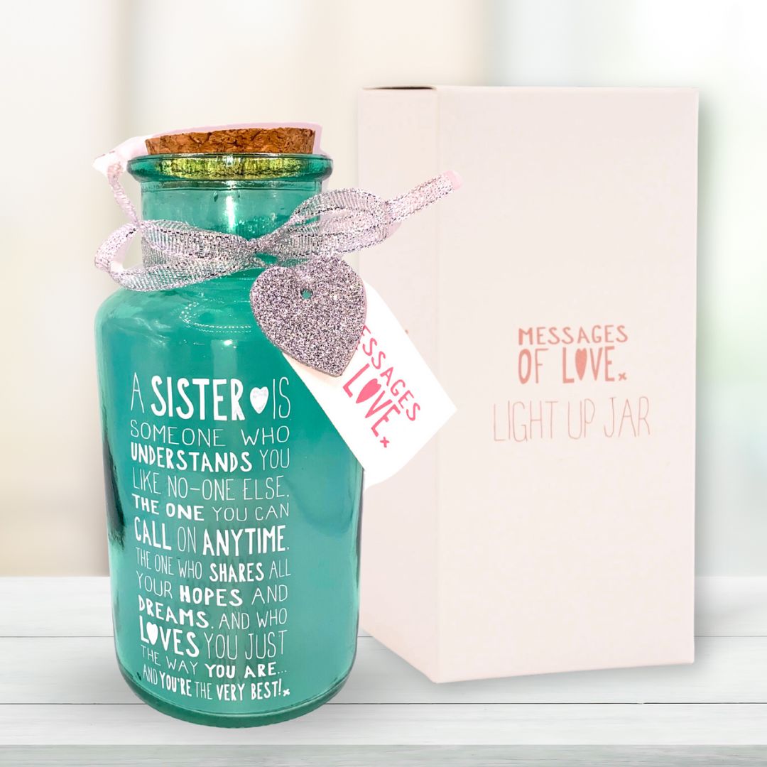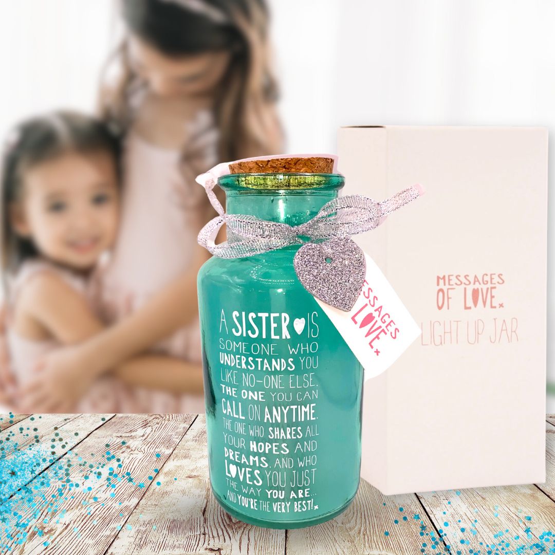 Are you looking for a heartfelt gift that captures the bond between sisters? This 'Messages of Love' Jar is the perfect choice. With its touching words, sparkling lights, and charming design, it is a gift that will touch your sister's heart and remind her of the special connection you share.