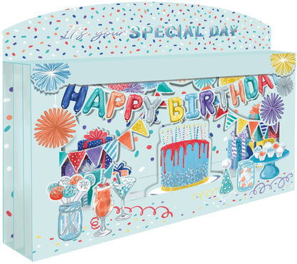 Looking for unique ways to celebrate a child's birthday? Surprise them with the fabulous celebration setup captured on this card to make their birthday an occasion to remember!