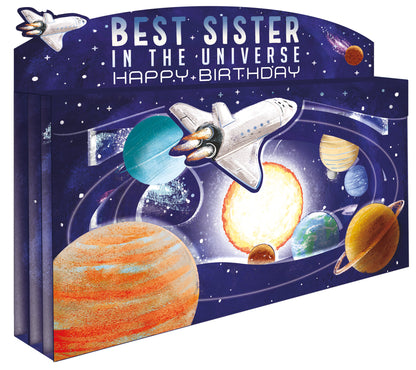 Hosting a space themed birthday? Perfect for a child who loves to learn about space, this brilliantly designed Pop Up card will transport your Sister's imagination to somewhere far far away!