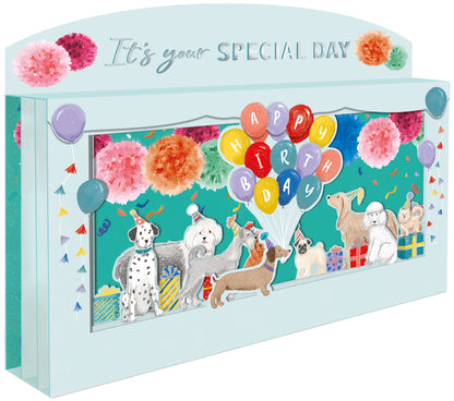 You are viewing: A Birthday Card with a 3D party scene with dogs