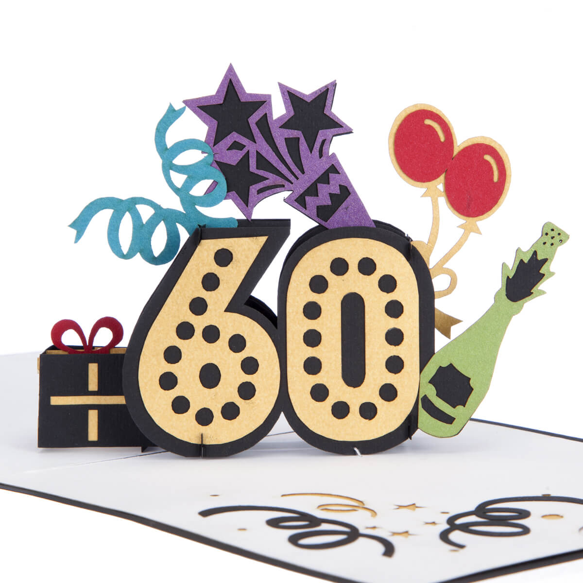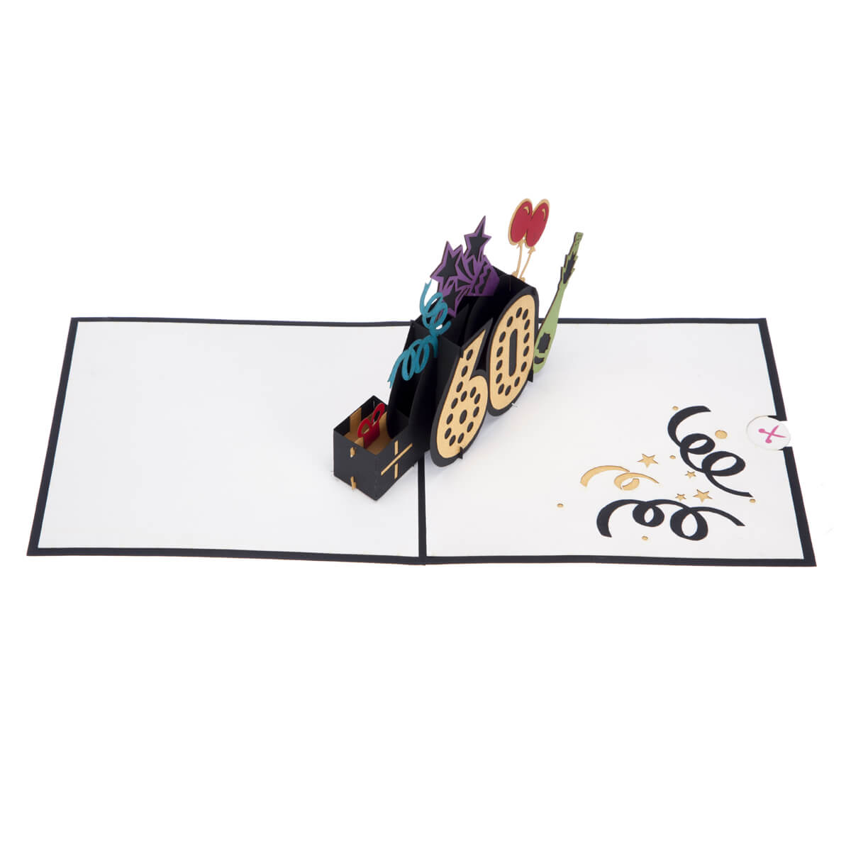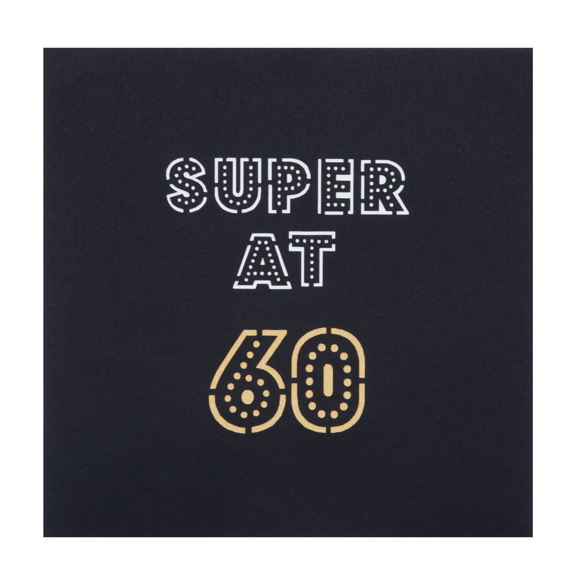 Details: It truly is what's inside that counts, each one of these Cardology 3D pop up cards hides a surprise intricate die-cut pop out inside. The Super At 60 features a delicate laser-cut 'SUPER AT 60' wording design on the front of the card and displays a hand-crafted magnificent and celebratory number 60 on the inside once opened. Each card comes flat with an envelope included Closed