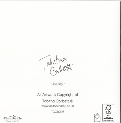 Details: This unique Artistic Card from the Tabitha Corbett range features a girl in a red swimming costume sitting on an island, dreaming of one day. With the caption 'One Day', this card is bound to inspire special someone.