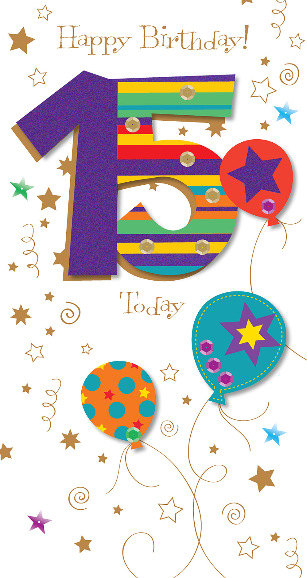 Looking for birthday card ideas for teenagers? This unique embellished card is covered in stars and golden touches to make the birthday boy or girl feel special on their 15th birthday.