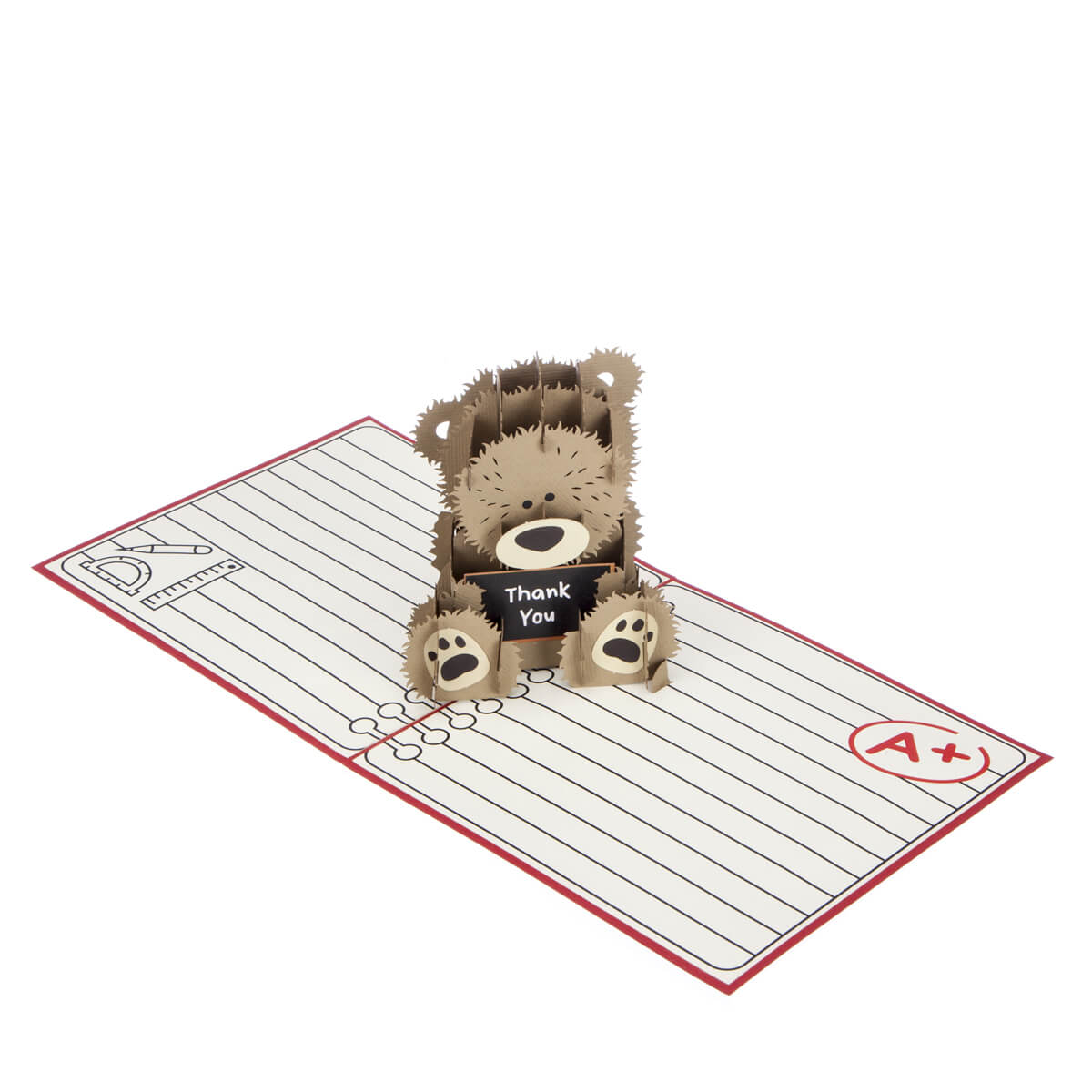 Details: It truly is what's inside that counts, each one of these Cardology 3D pop up cards hides a surprise intricate die-cut pop out inside. The Thank You Teacher card features a delicate laser-cut apple with 'Thank You' wording design on the front of the card and displays a hand-crafted magnificent and pretty bear with 'Thank you' written on a blackboard on the inside once opened. The perfectcard for your favourite teacher. Each card comes flat with an envelope included Closed