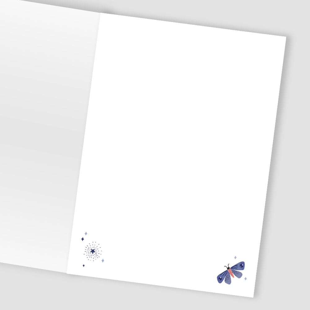 Good to know: This eco-friendly contemporary card is made of card and comes with a white envelope. It's printed with vegetable soy inks and is protected with cello-wrap.