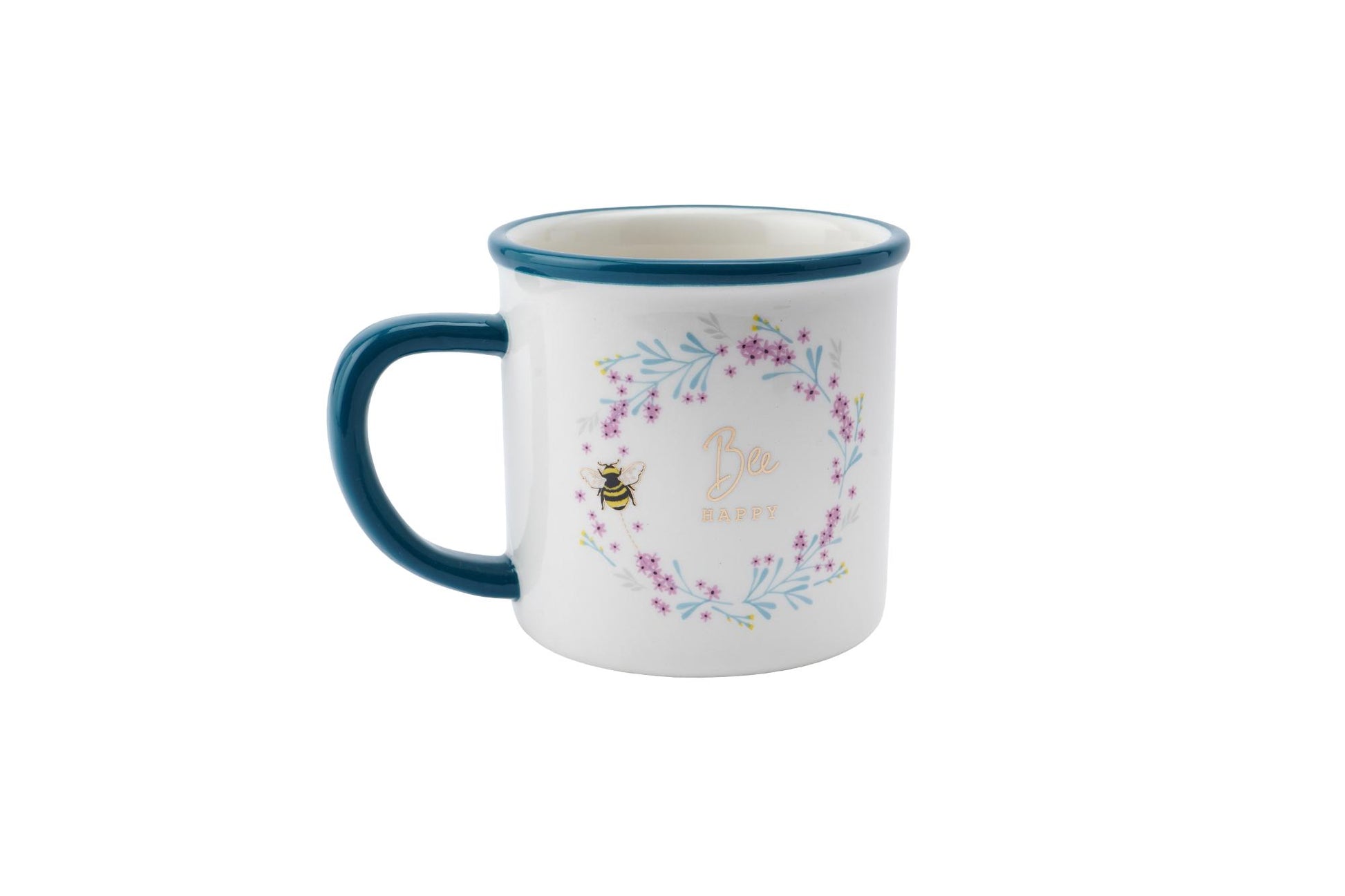 Details: This stoneware mug by CGB Giftware is part of The Beekeeper collection and features beautiful purple and blue wildflowers and bumble bees. The mug is adorned with the message 'Bee HAPPY' in gold, making it a perfect gift for someone special.