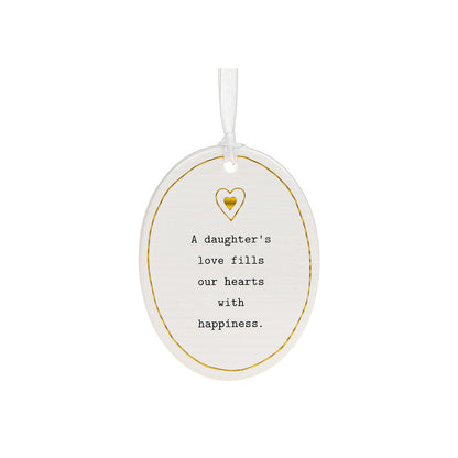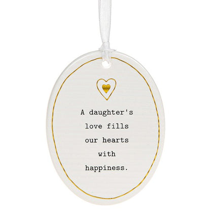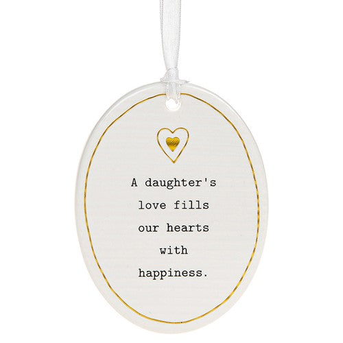 Details: A beautiful ceramic ivory coloured oval shaped hanging plaque from our sentimental 'Thoughtful Words' range. This gorgeous gift idea is finished with gold foil detailing featuring a perfectly worded sentimental message in black typeface lettering and comes in a nice craft box.