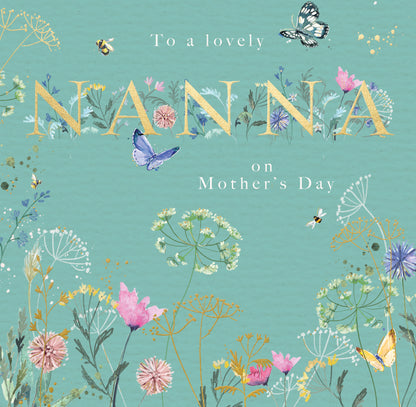 Details: Celebrate Mother's Day with this beautiful and eco-friendly 'Nanna' card from Ling Design's Nicely Said range. Adorned with wild flowers and butterflies, it's sure to bring joy and positivity to any mantelpiece.