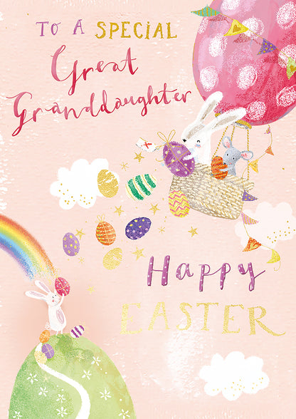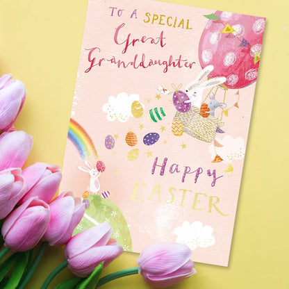 Surprise a Great-Granddaughter and make her feel loved with a charming foiled rabbit card that will bring her joy and brighten her Easter holiday.
