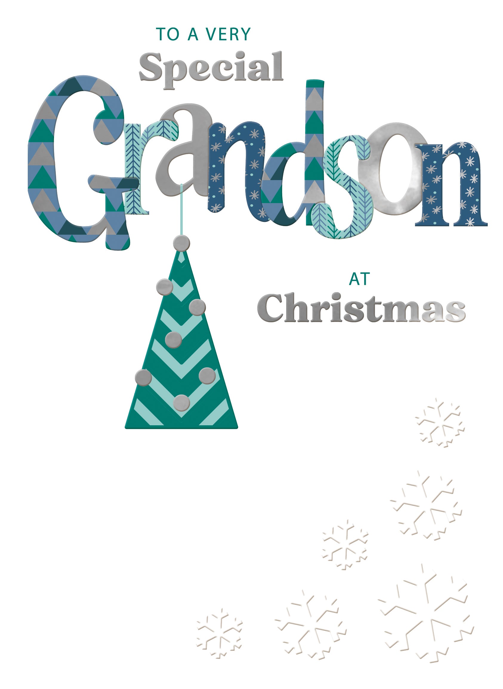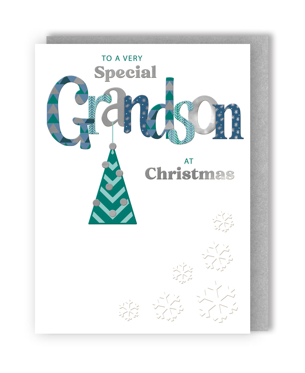 Details: This eco-friendly contemporary card has been thoughtfully designed by Second Nature as part of their Festive Joy range and features a simple design with an embossed Christmas tree with the caption 'To a Very Special Grandson at Christmas'.