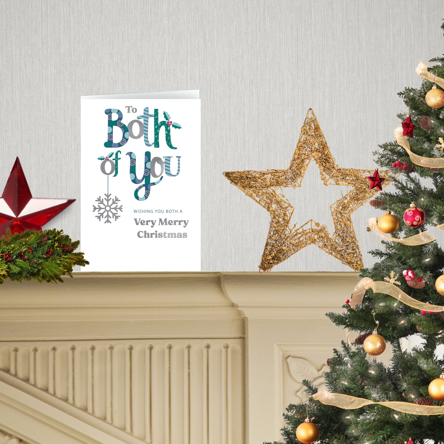 Details: This eco-friendly Christmas card from Second Nature's Festive Cheer collection is beautifully designed with patterned foiled lettering that reads 'To Both of You'. The embossed silver snowflake bauble adds a magical touch to the card and features the caption 'To Both of You Wishing you Both a Very Merry Christmas'