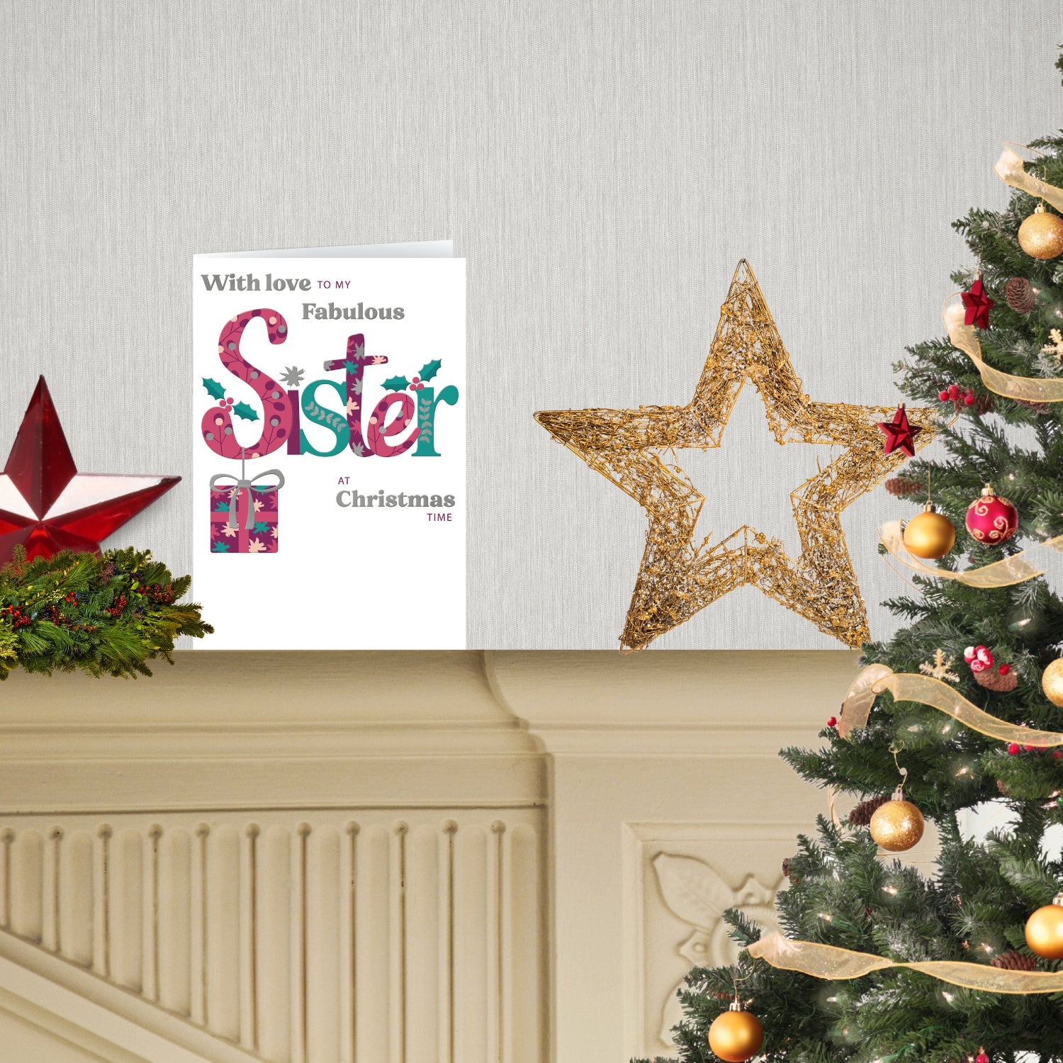 Details: This Christmas card from Second Nature's Festive Joy range is the perfect way to show love to your sister. The eco-friendly design features an embossed red and silver present alongside the caption 'With love to my Fabulous Sister at Christmas time'.