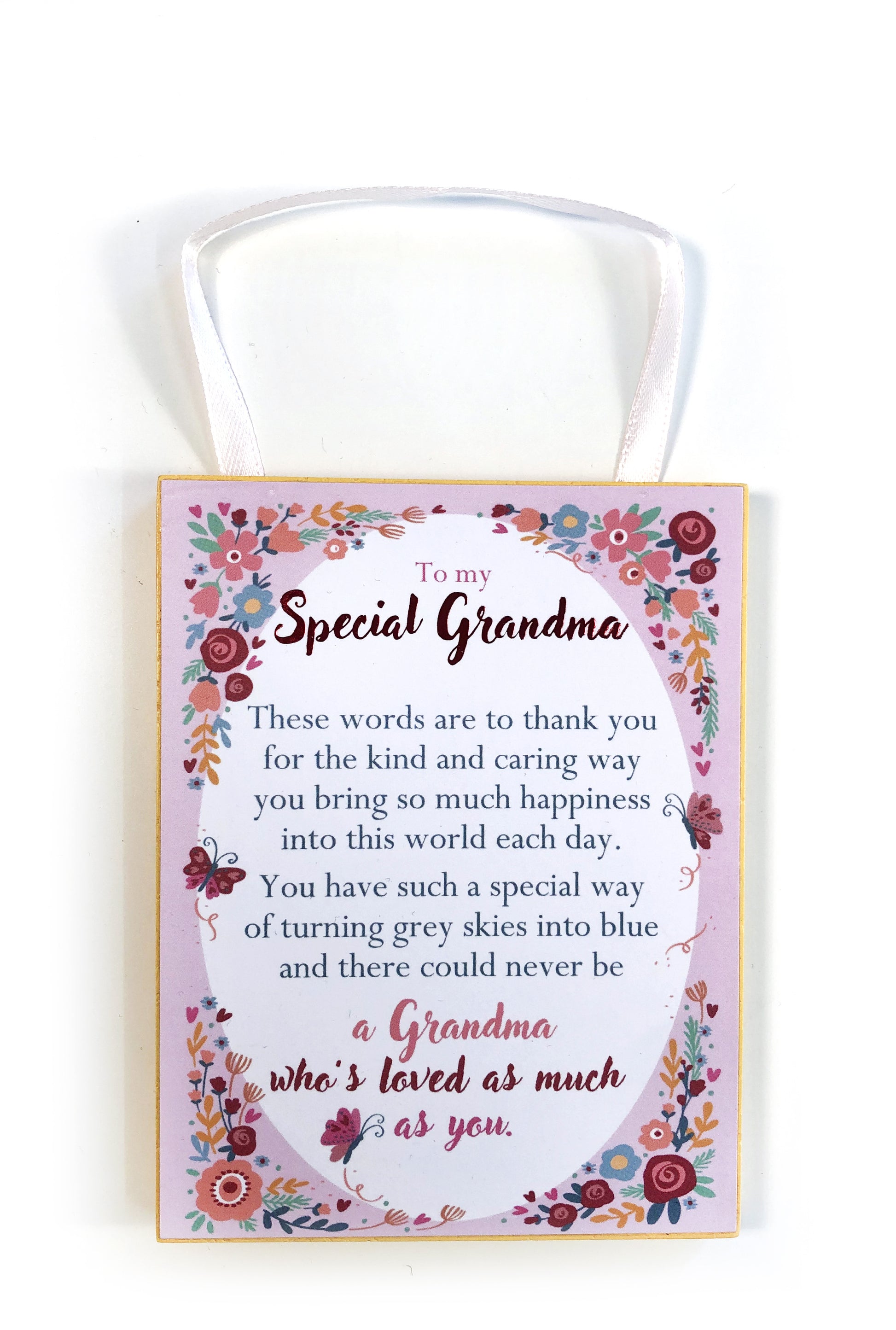 Caption: To My Special Grandma, These words are to thank you for the kind and caring way you bring so much happiness into this world each and every day. You have such a special way of turning grey skies into blue and there could never be a Grandma who's loved as much as you.