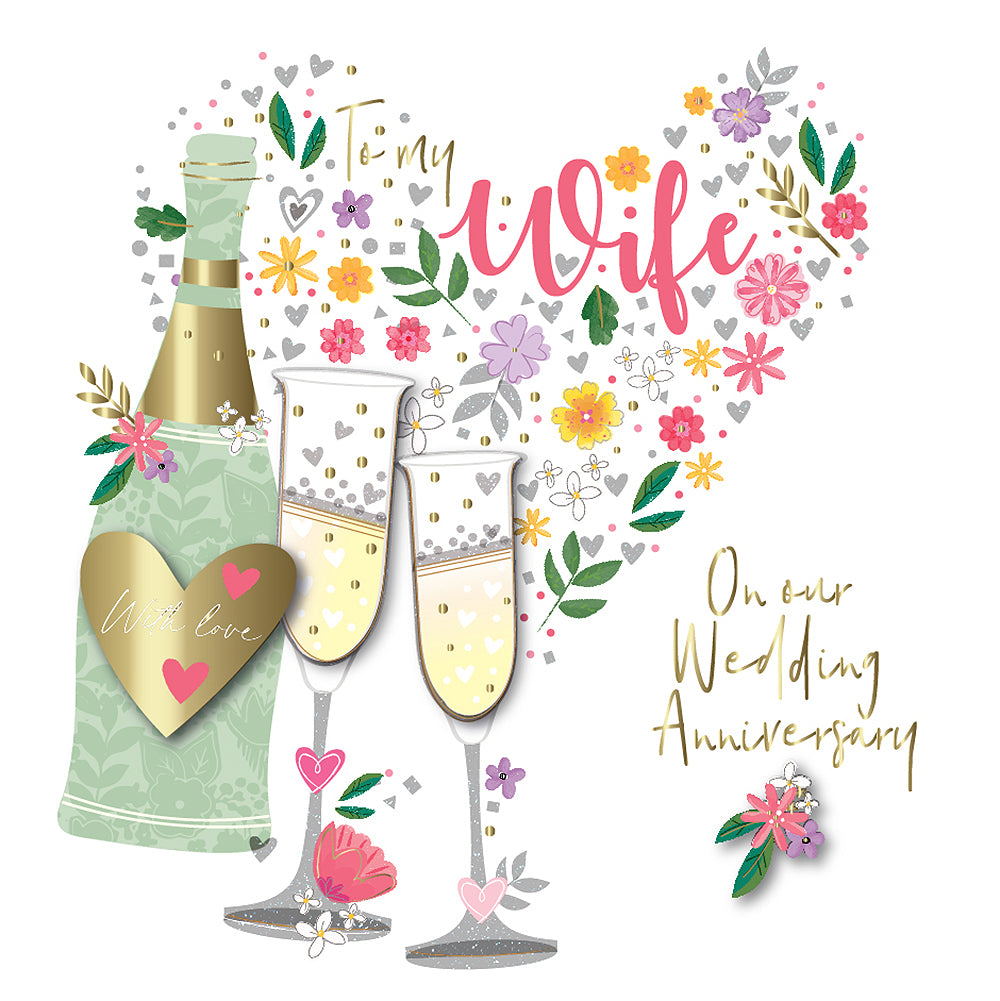Wondering what to write in an anniversary card for your Wife? Let this gorgeous greeting card do the talking! This unique floral design will show her how much you care and make her feel loved on this very special milestone.