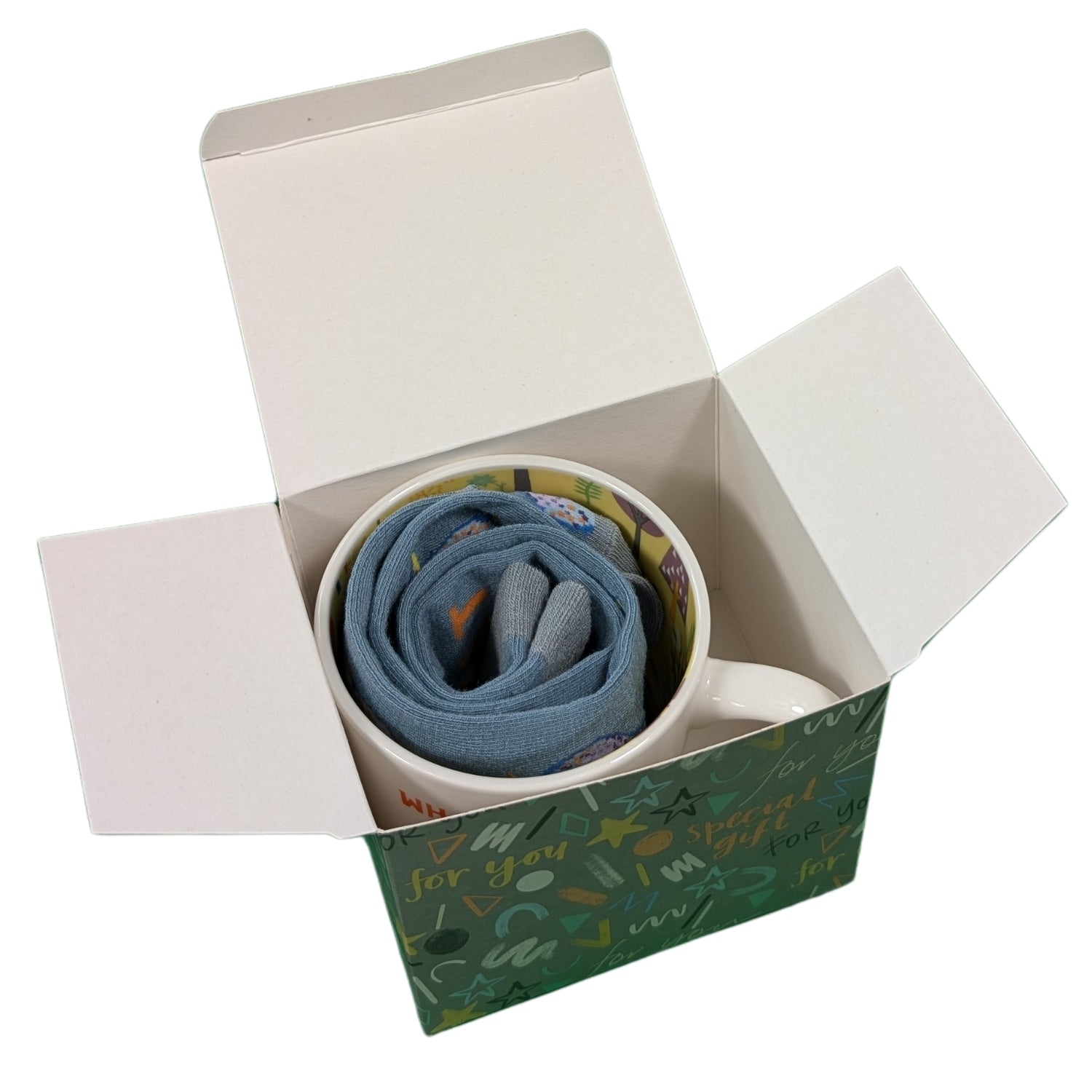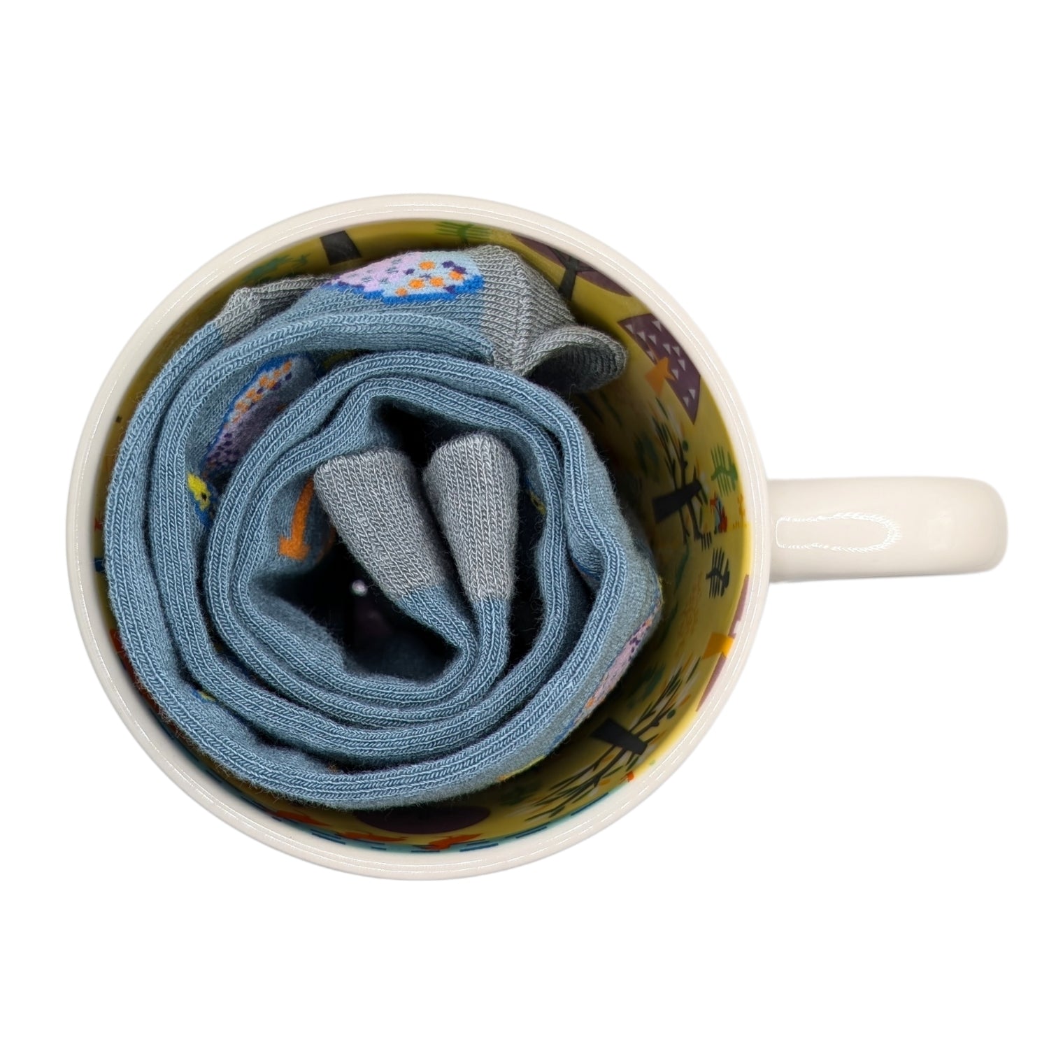 Good to know: This unique gift set contains a pair of socks inside a ceramic mug presented with a coordinating gift box. Designed to complement the popular 'Inside Out' mug design, the socks are soft and made from bamboo, offering both comfort and style.