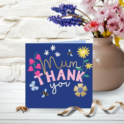 Details: This eco-friendly contemporary greeting card from Second Nature's Wildflower range features a heartfelt "Mum Thank You" message adorned with flowers and bees.