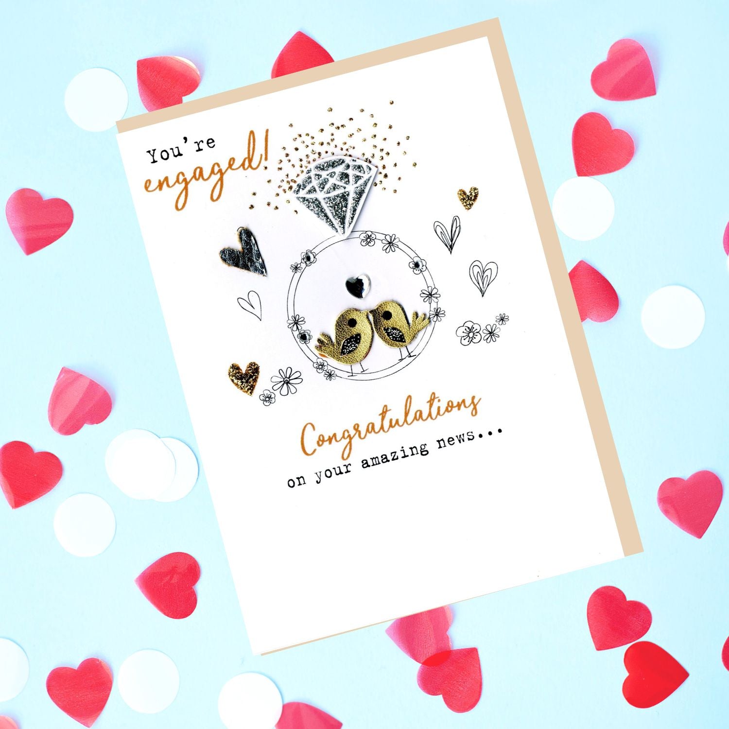 Message: You're engaged! Congratulations on your amazing news… …wishing you a future filled with Love & Happiness